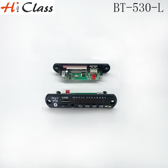 Brand Name:Hiclass size:106*25mm Model:MP3 BT-530-L place of origin:Guangdong China format:WMA/MP3/AMP support:USB/AUX/FM/BLUETOOTH Color:black DC:12V/5V style:card